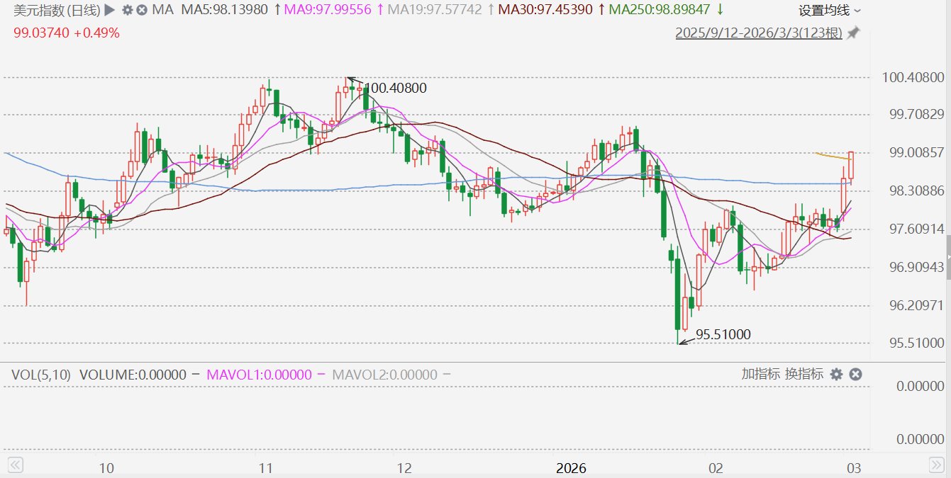格隆汇3月3日|美元指数DXY突破99,刷新1月20日以来新高证券配资官网入口,永华证券,永华证券配资,香港永华证券公司日内涨0.45%。